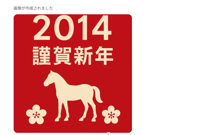 言い換えれば、「2014」と「年賀状」ってキーワードだけで、午年の絵柄の年賀状の素案は出してもらえるので、これも使い方っちゃー使い方かと。