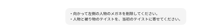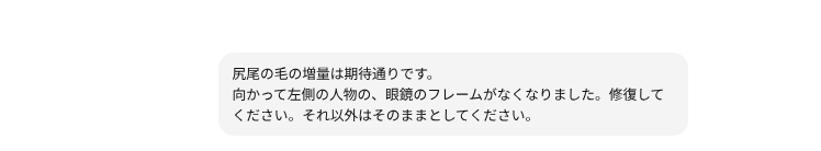 メガネがただの線になっちゃってるので、そこだけ直したくて以下のプロンプト投入。
