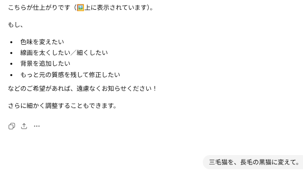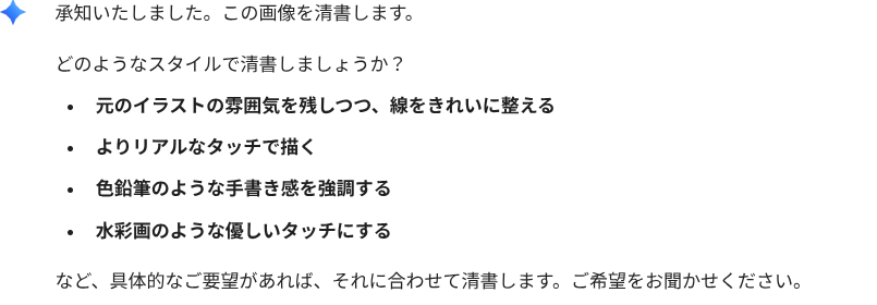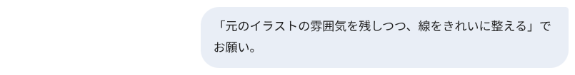 ChatGPTで始めたときと同じように、まずはイラストを清書するというプロンプトを投下です。